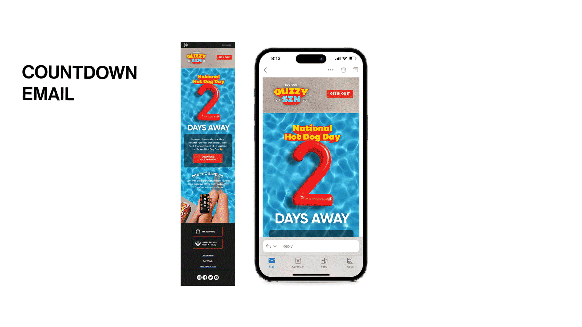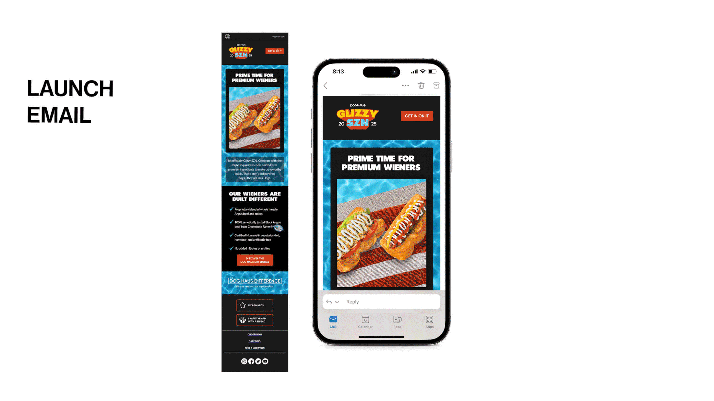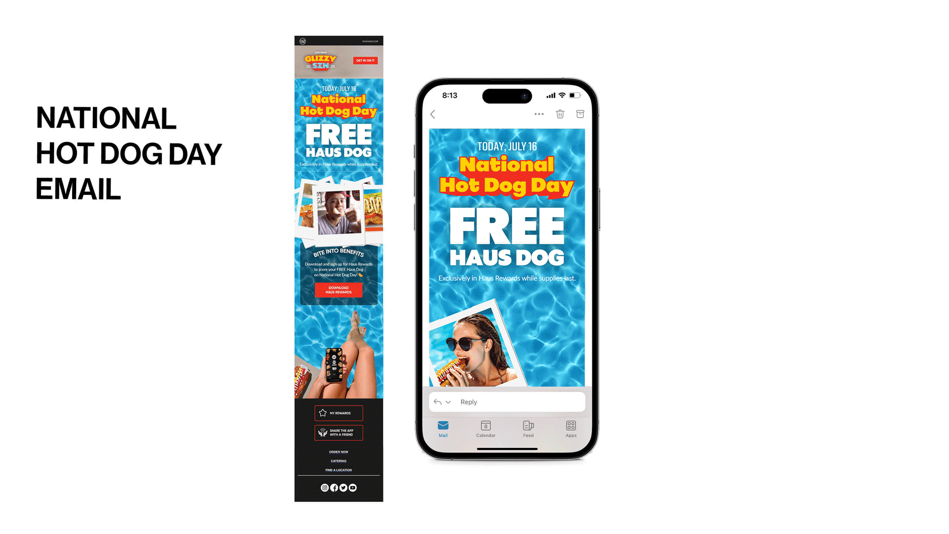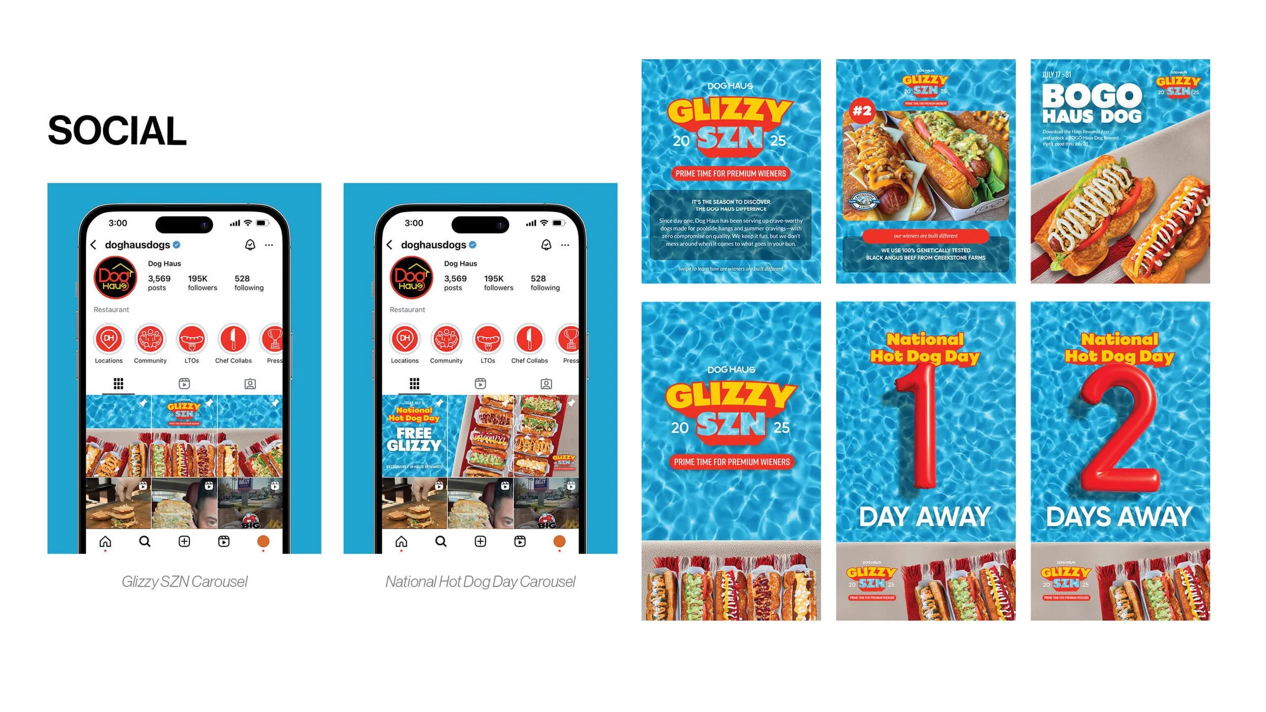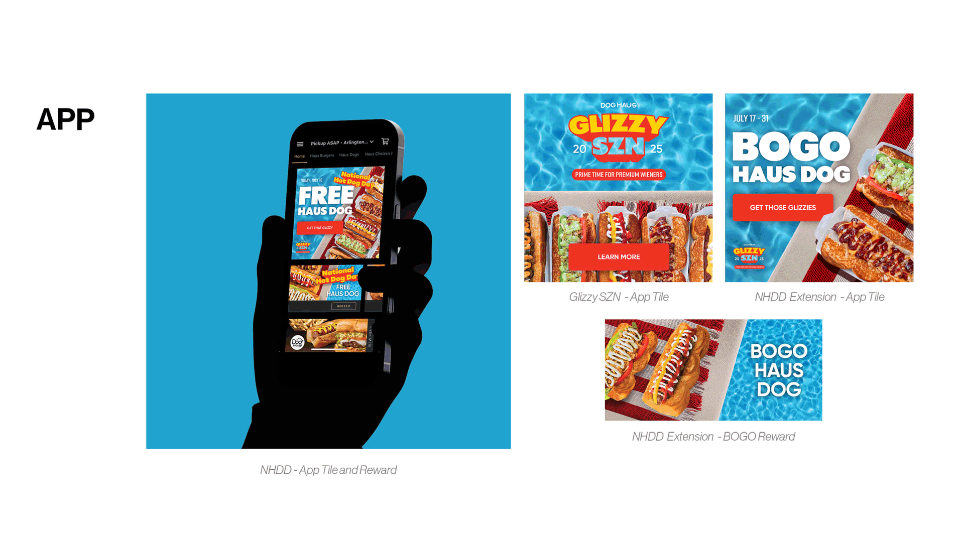 Glizzy SZN was a seasonal marketing campaign built around Dog Haus’ biggest sales and media moment of the year: National Hot Dog Day. Our goal was to create a summer-long initiative that drove traffic, deepened loyalty engagement, highlighted the holiday, and elevated overall brand visibility with cohesive, high-energy creative. The campaign culminated in a standout National Hot Dog Day, delivering exceptional redemption volume, nationwide earned media reach, and over 39 million digital views. On 7/16 alone, the app brought in more than 7,200 new users, compared to a daily average of 290. By the end of the month, we reached 16,400 total signups, the highest in brand history.